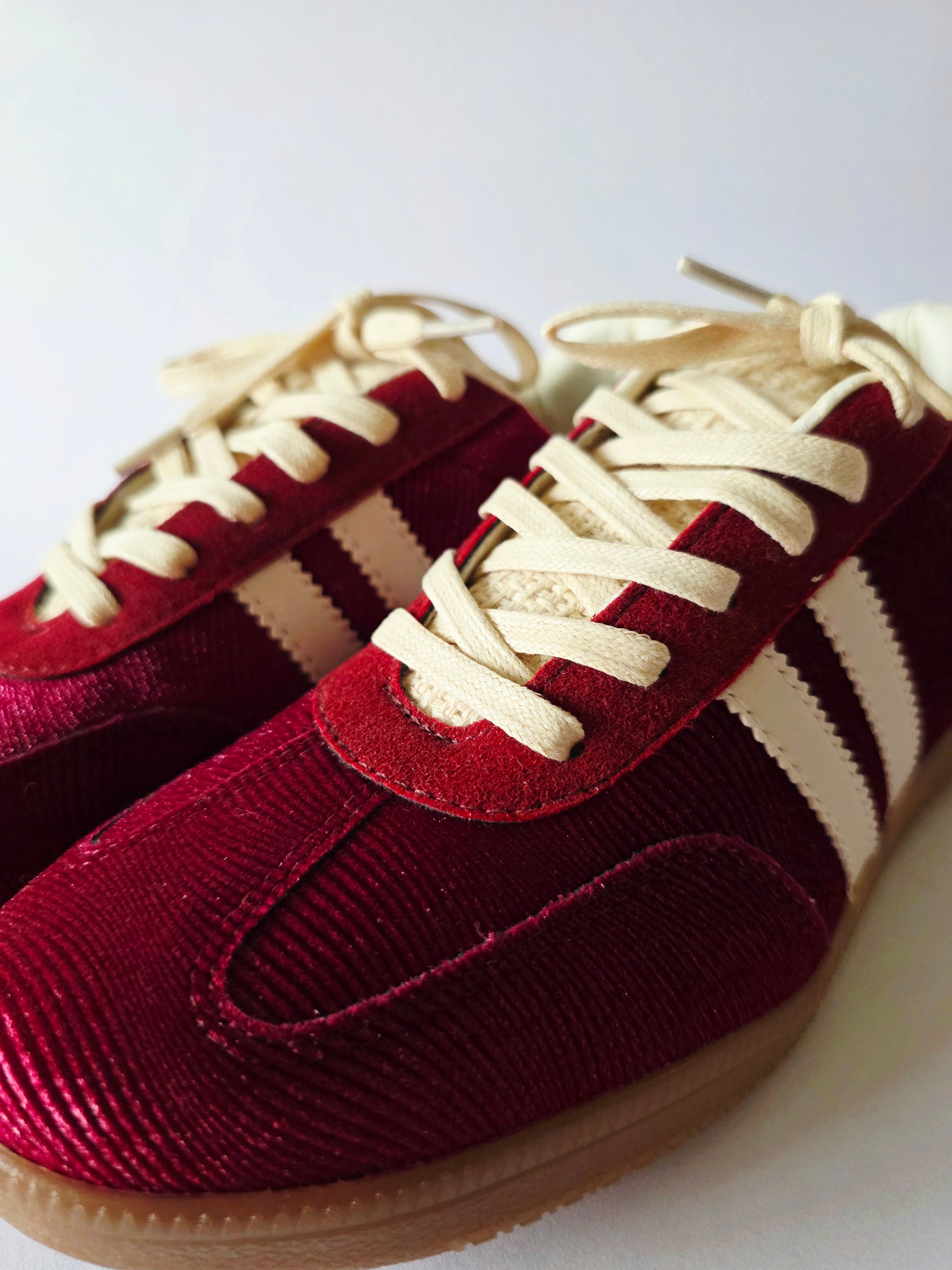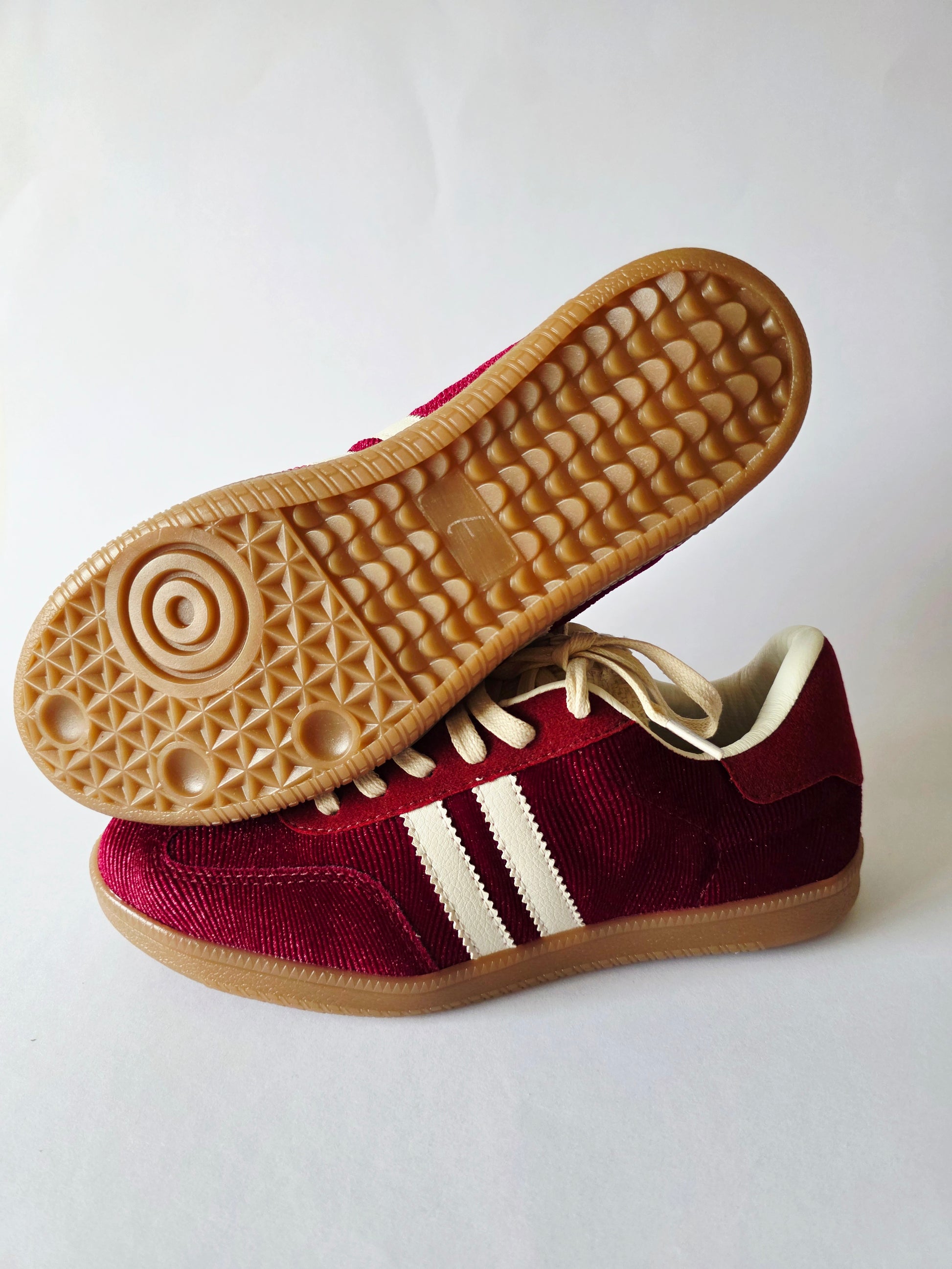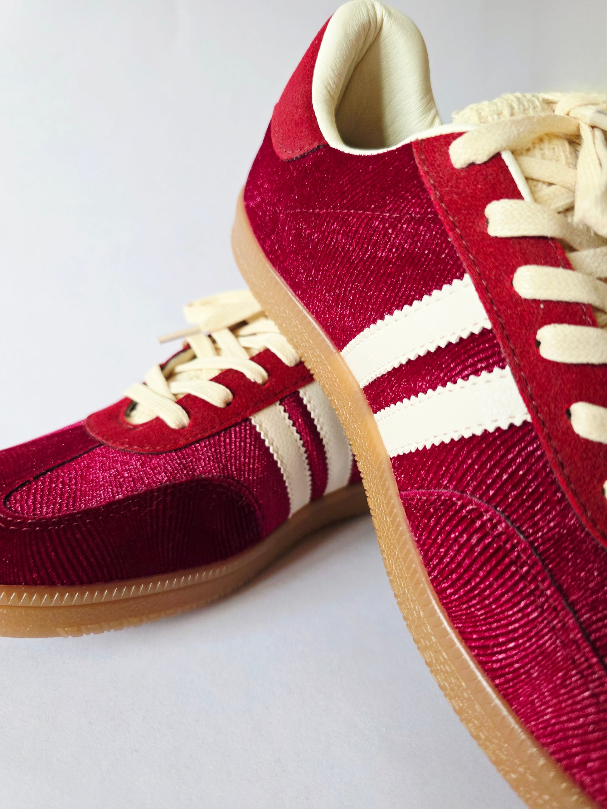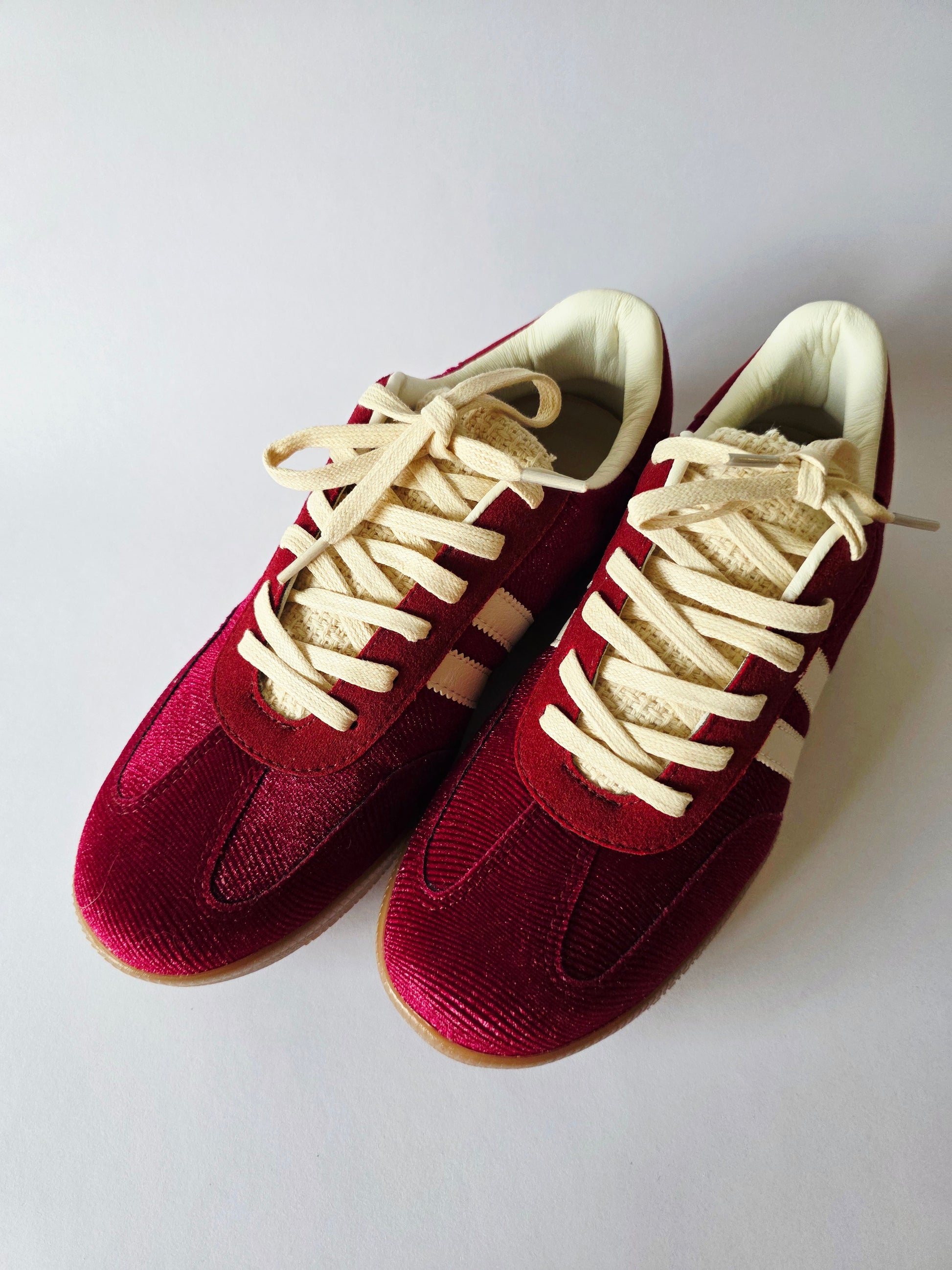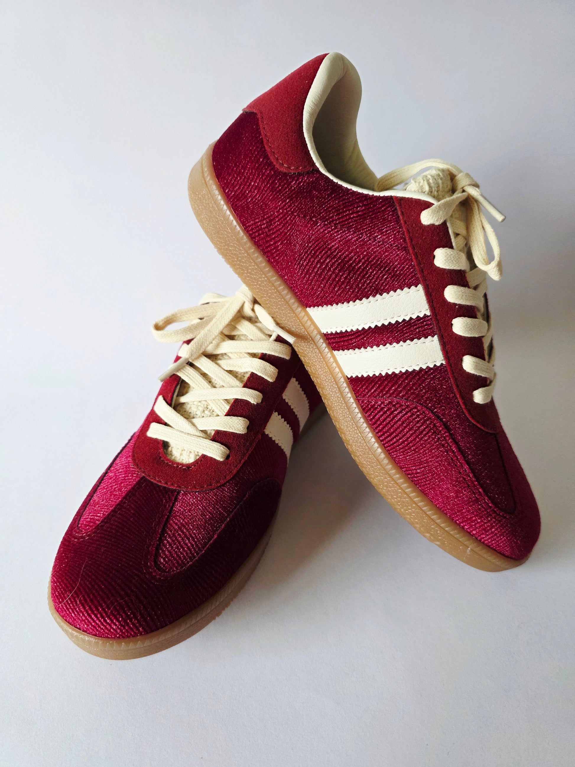El contraste de las franjas y cordones en beige equilibra la fuerza del color, mientras que la suela en tono caramelo conserva el espíritu retro-urbano que caracteriza a este modelo. Cómodas, atrevidas y llenas de estilo, son el par perfecto para quienes buscan caminar con alma y dejar huella.