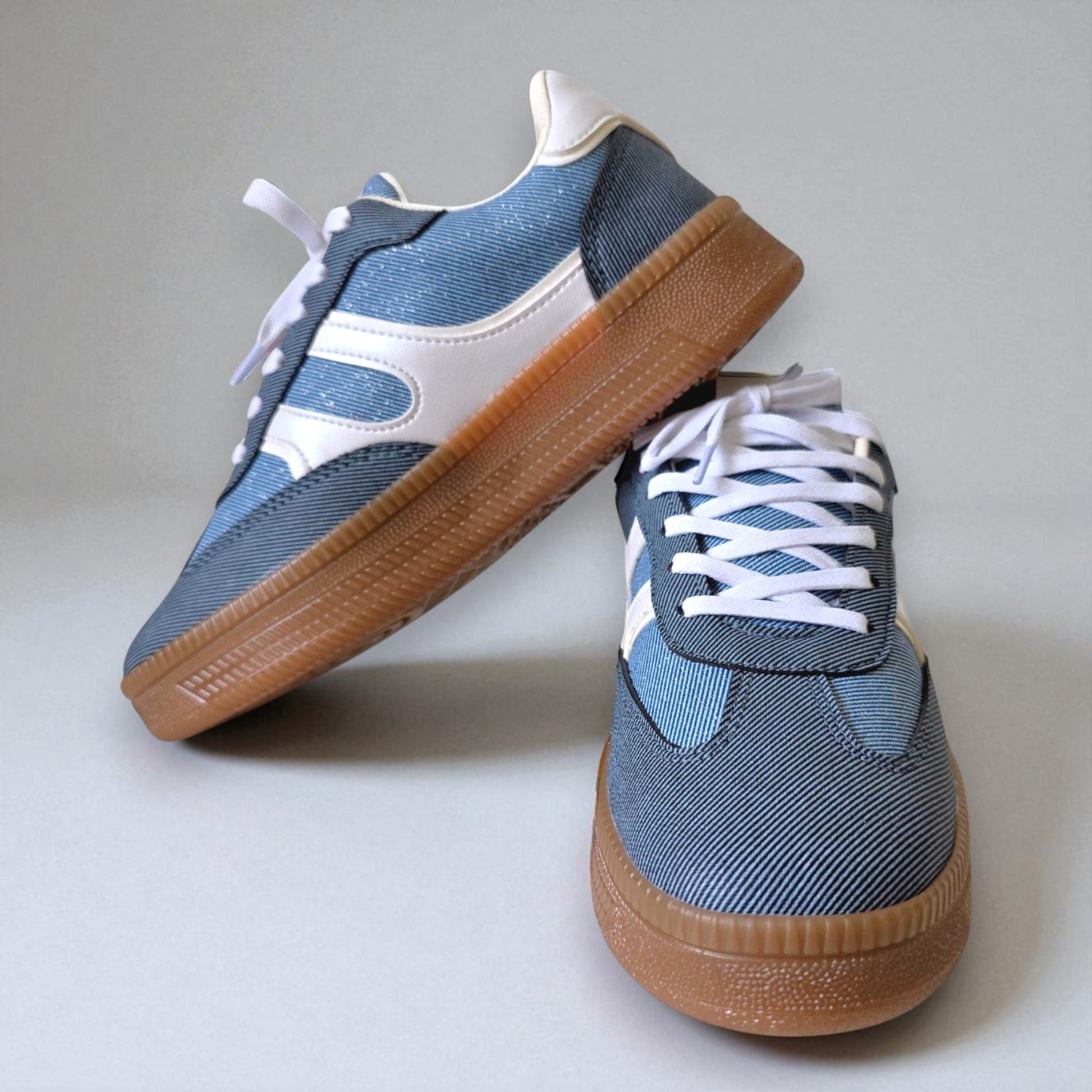 Con aires nostálgicos pero alma futurista, la Denim Spark reinventa el clásico con mezclilla azu oscuro y claro, con toques de blanco en contraste. Además, la textura cuenta con brillitos y la suela caramelo agrega personalidad a cada paso.