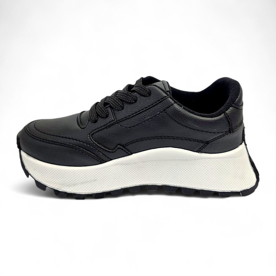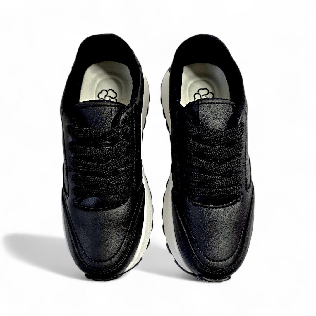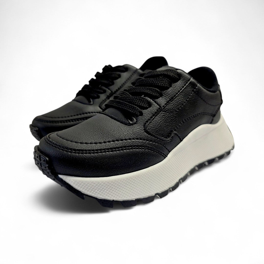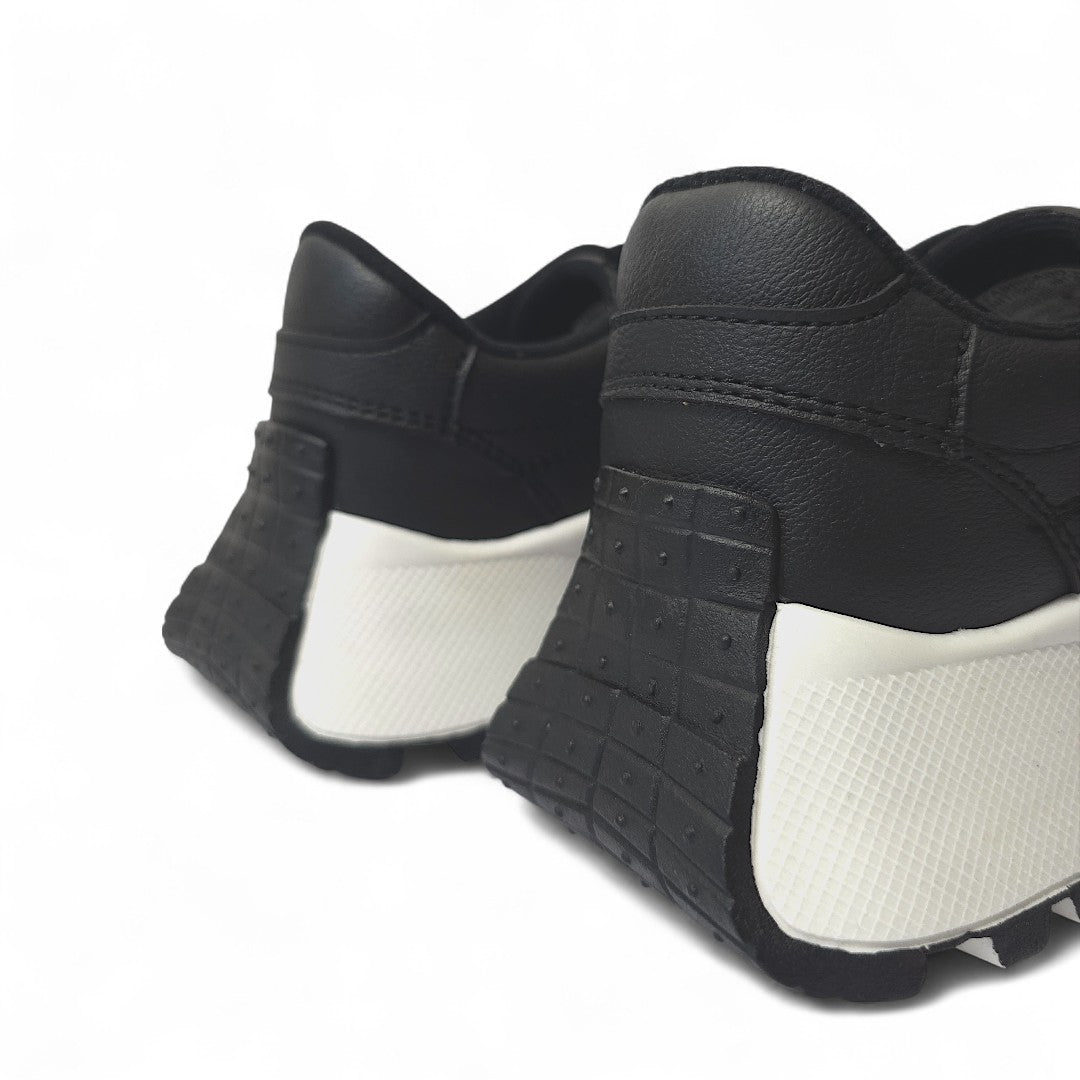 Nuestra Noir es una silueta sobria y moderna que se adapta a cualquier look. Con detalles de textura y suela blanca en contraste, esta zapatilla es sinónimo de versatilidad y carácter.
