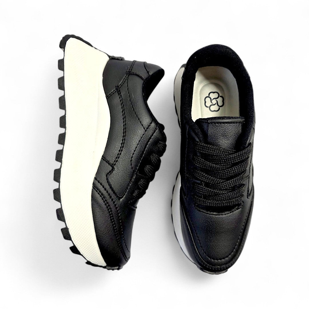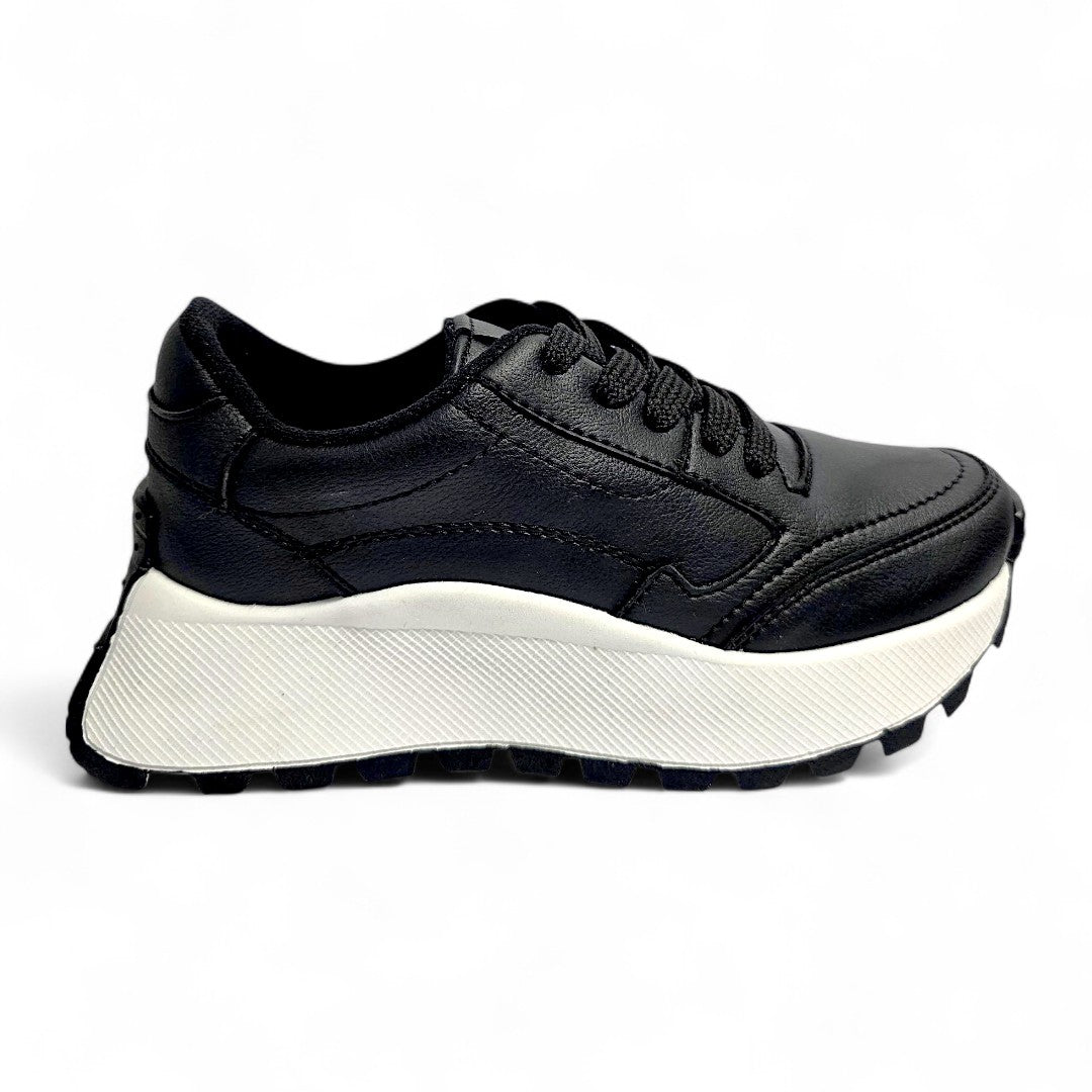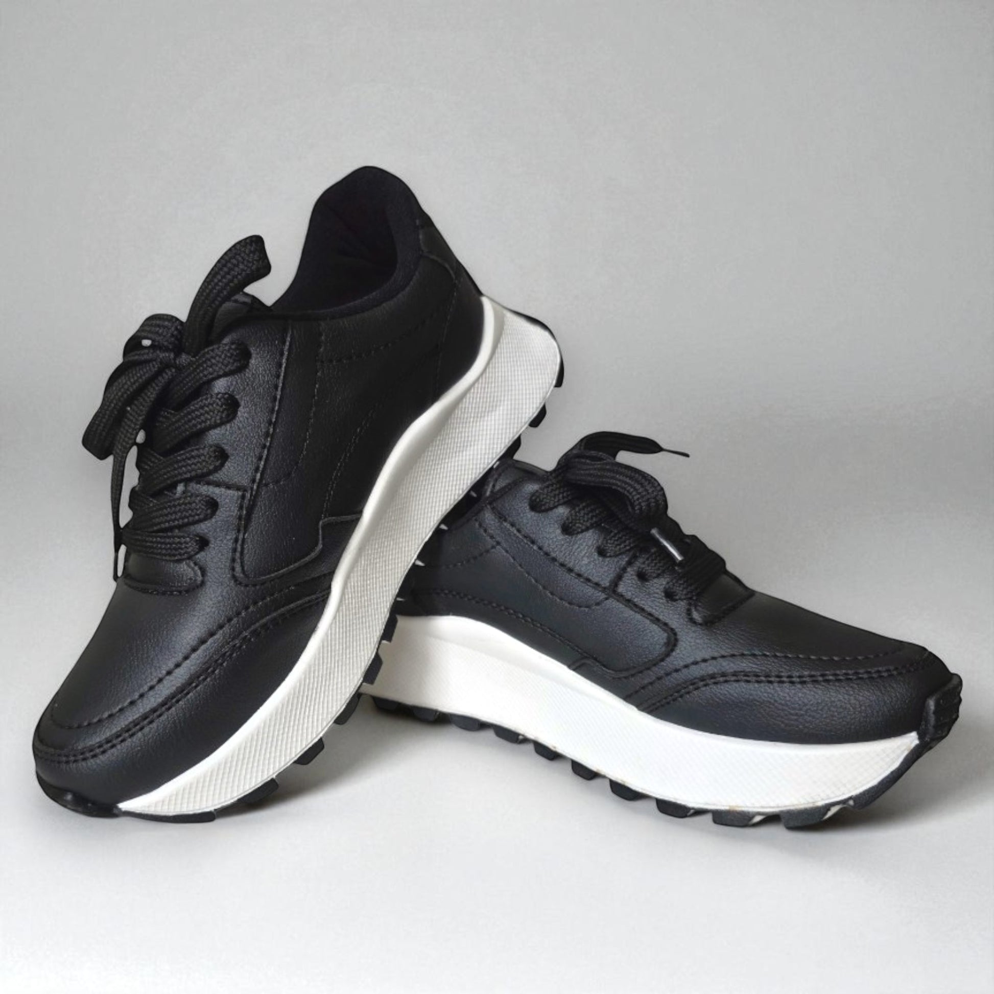 Nuestra Noir es una silueta sobria y moderna que se adapta a cualquier look. Con detalles de textura y suela blanca en contraste, esta zapatilla es sinónimo de versatilidad y carácter.