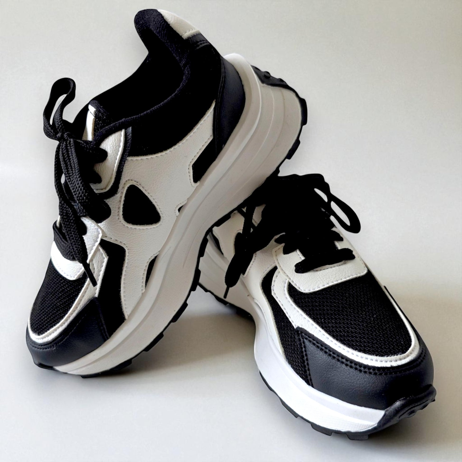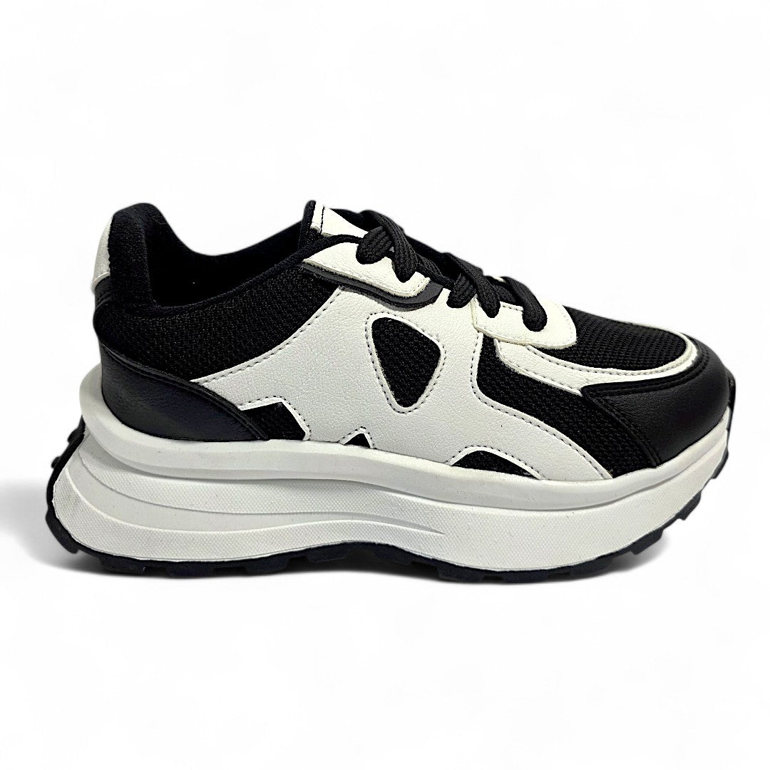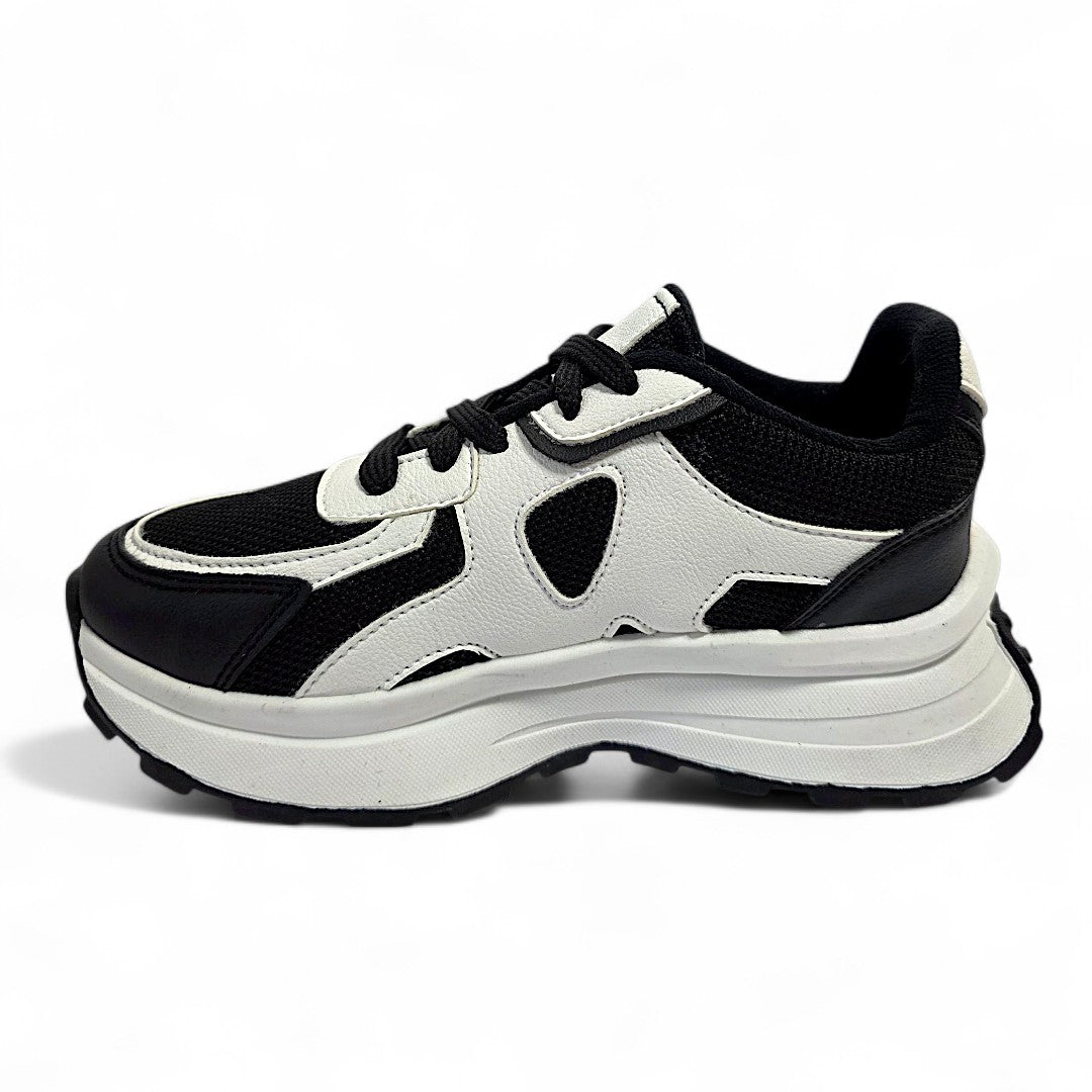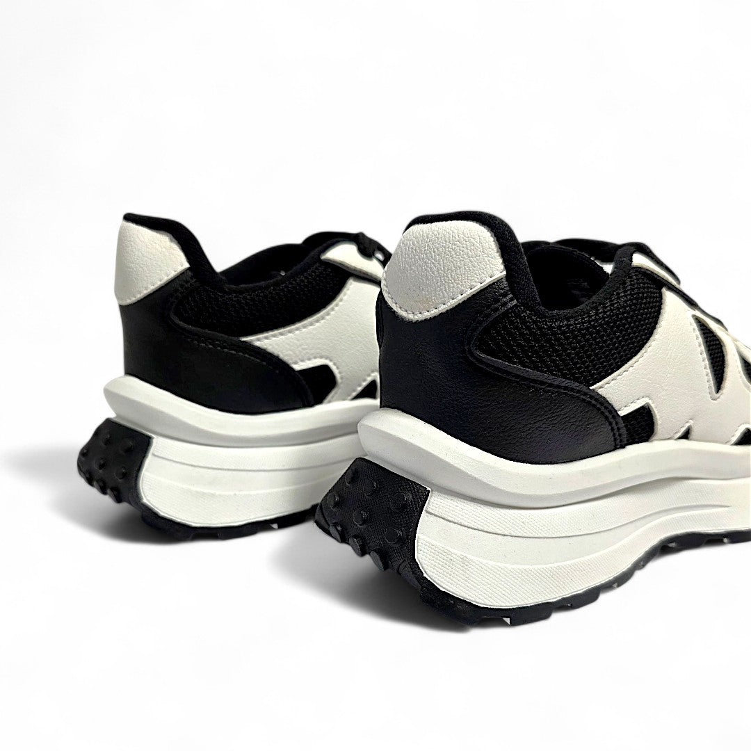 El equilibrio perfecto entre actitud y confort. Nova combina malla negra respirable con detalles blancos en piel sintética para una pisada segura y moderna.