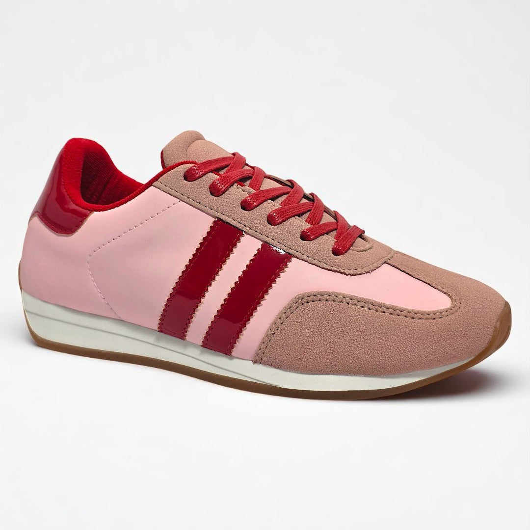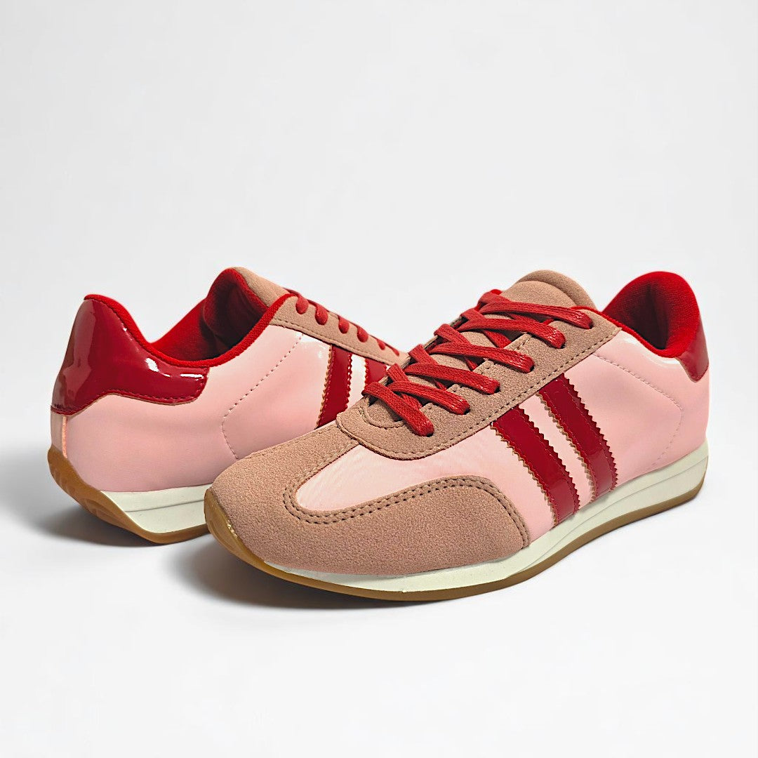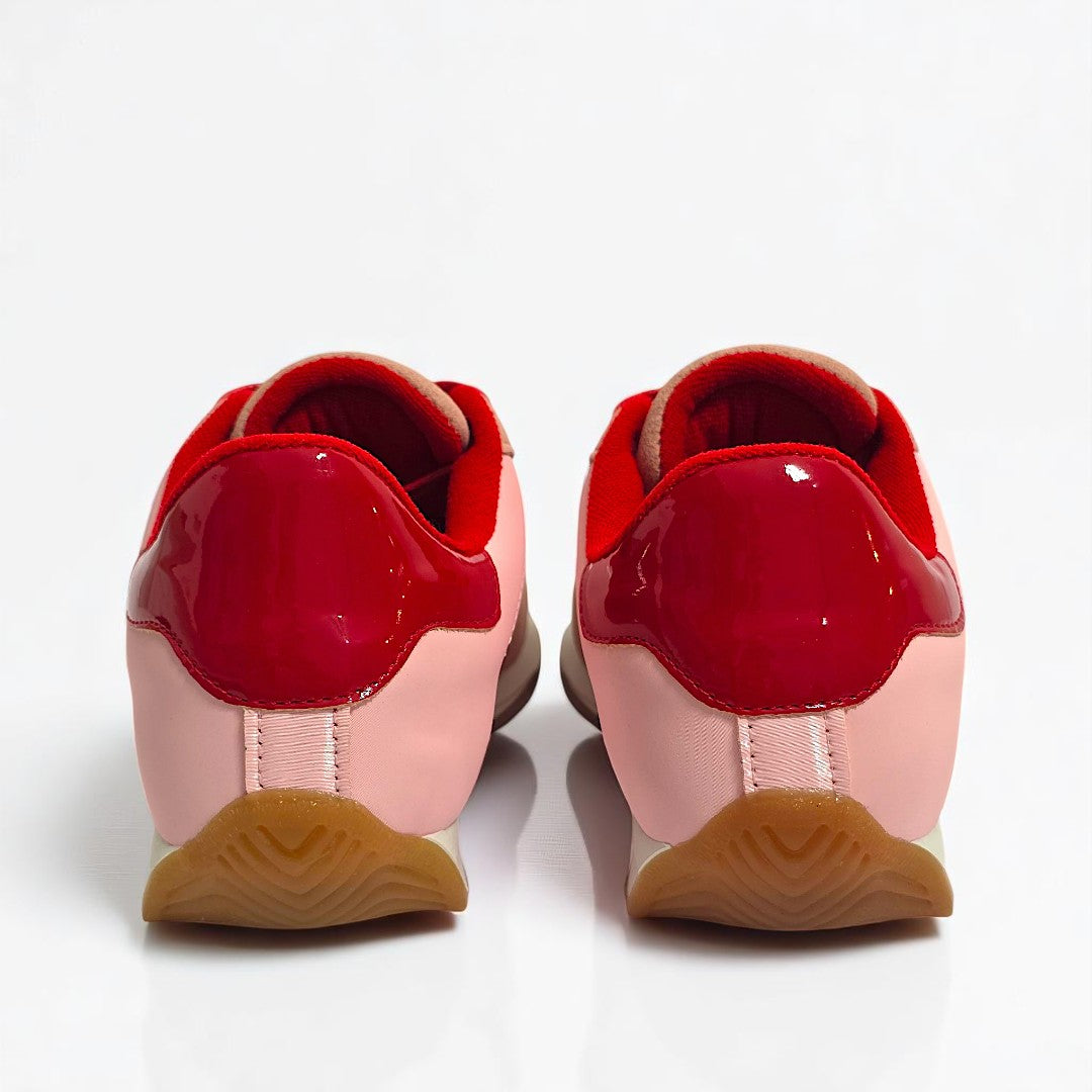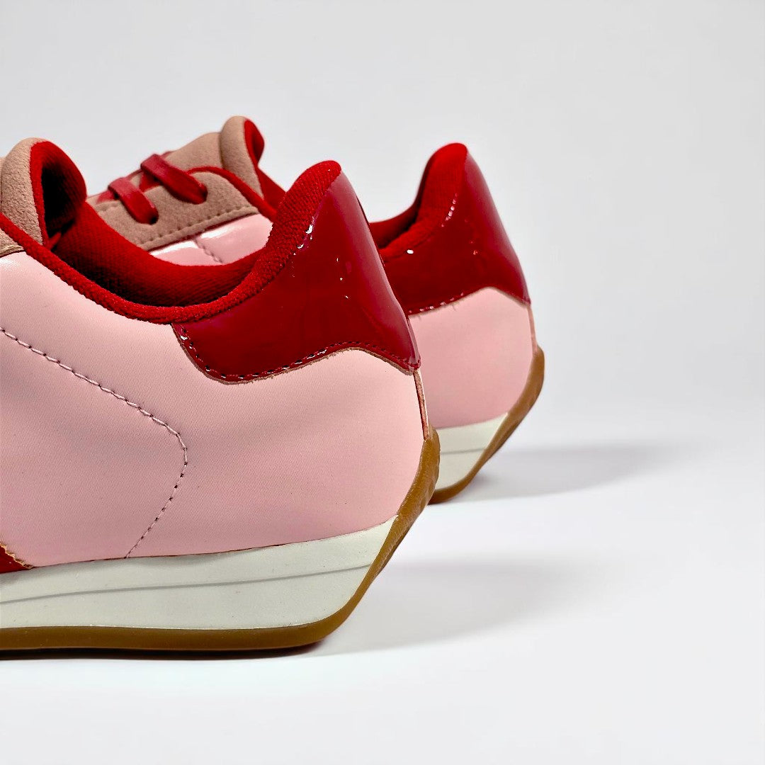 Color, diseño y personalidad se fusionan en nuestro modelo Pink. Unos sneakers retro con combinación de gamuza y textil en tonos rosados y rojos vibrantes que no pasarán desapercibidos.