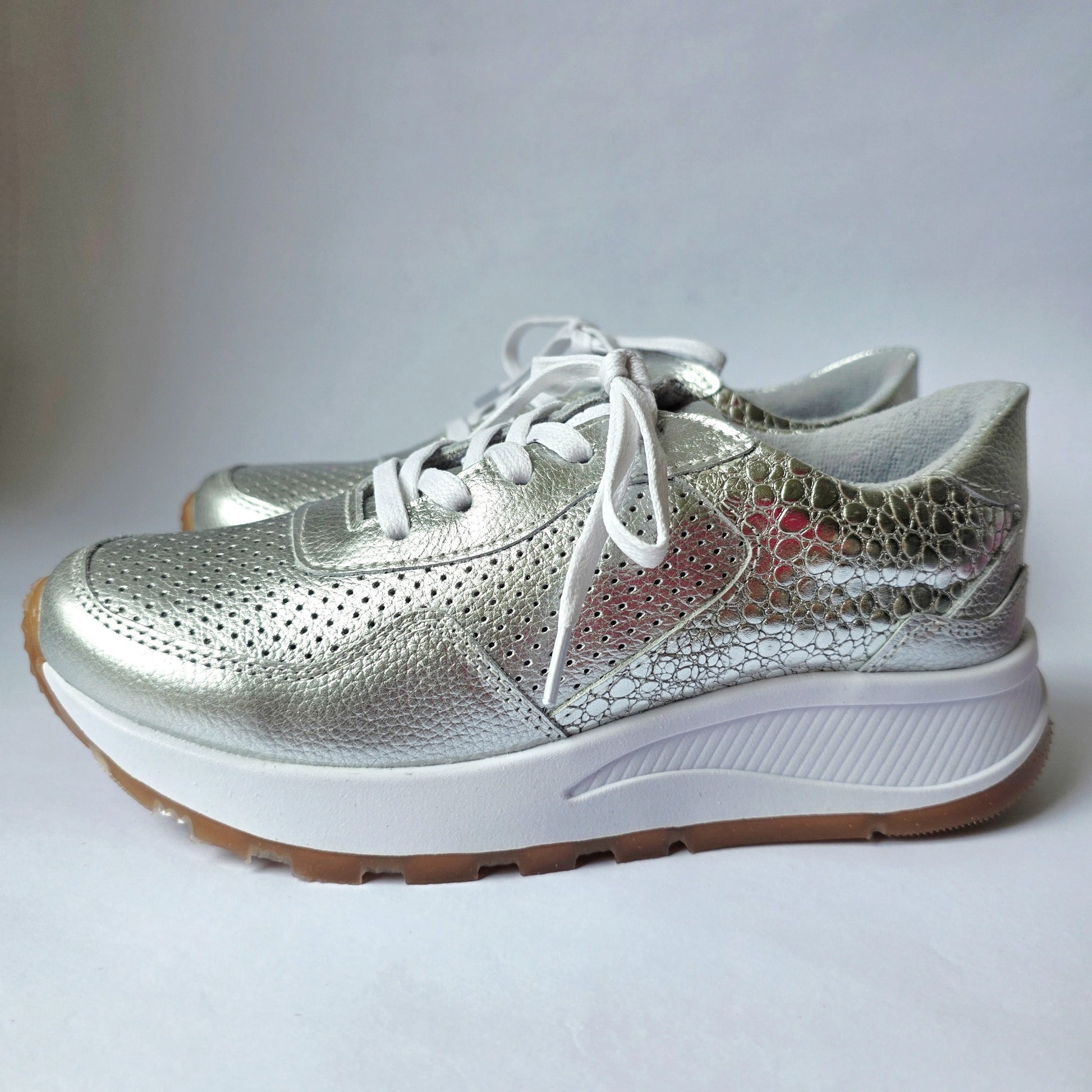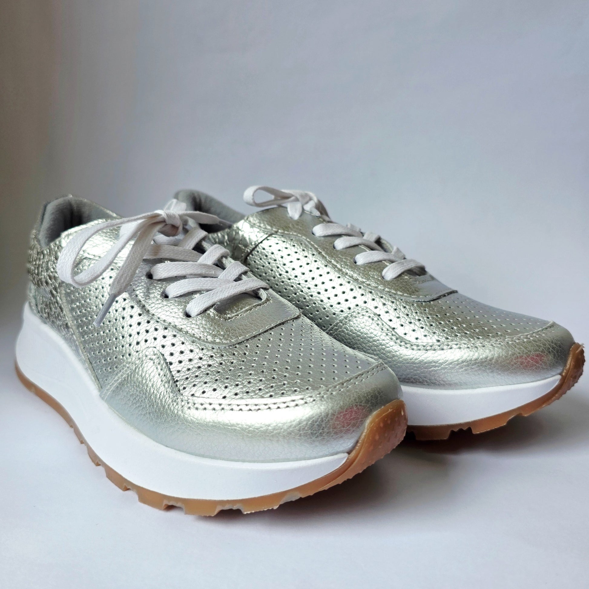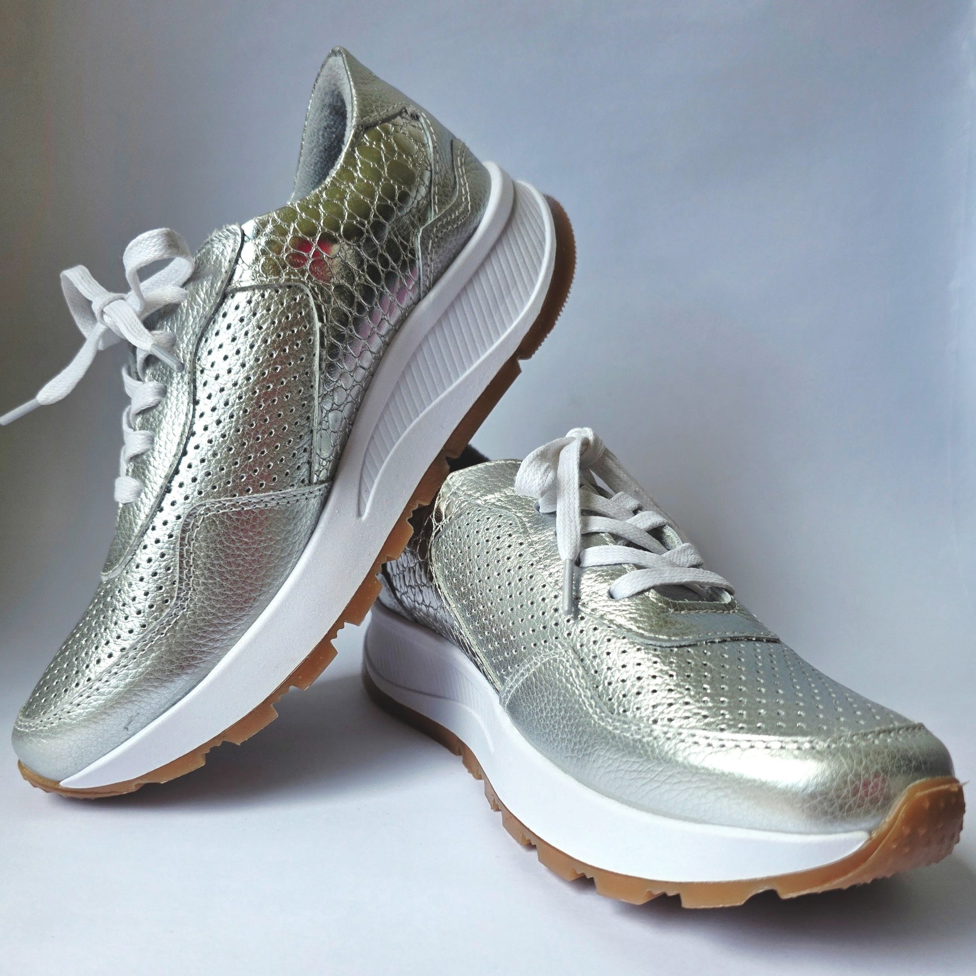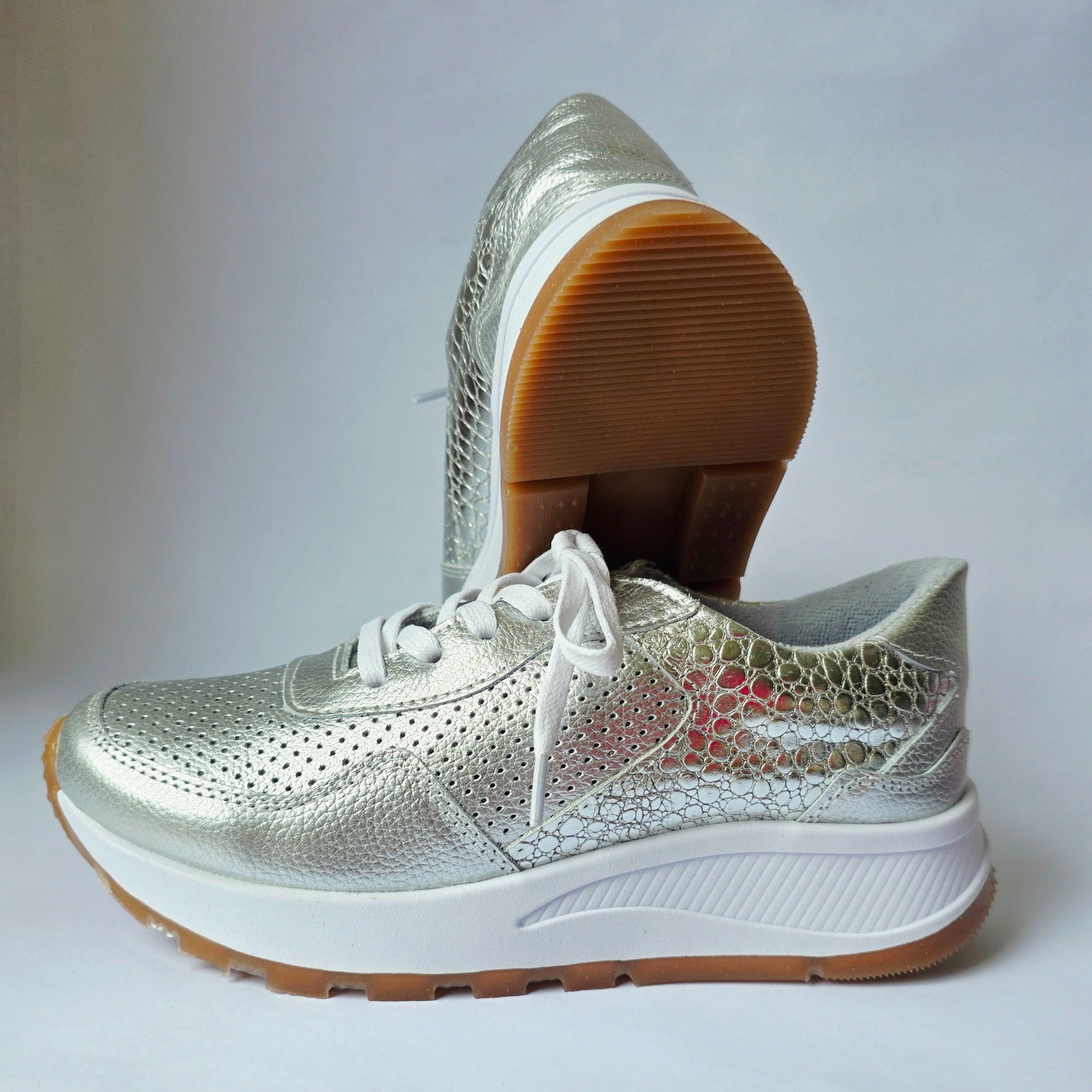 Su diseño ergonómico y suela ligera ofrecen comodidad durante todo el día, mientras que el toque brillante los convierte en el complemento perfecto para looks casuales, urbanos o incluso ejecutivo más chic.